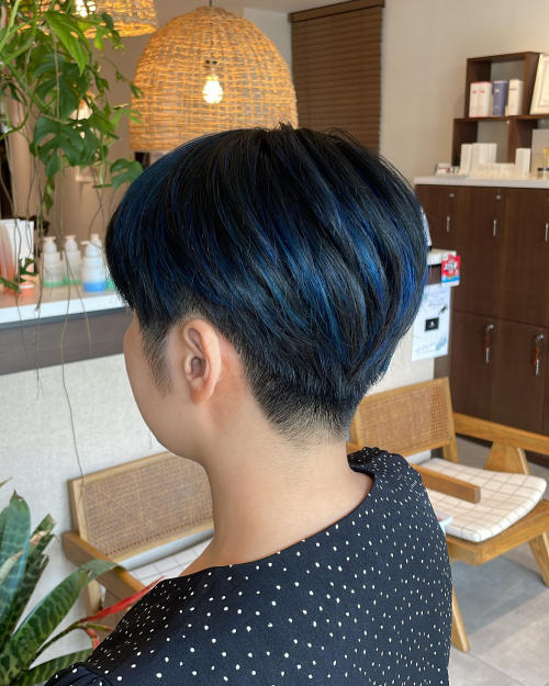 少し太目のハイライトを入れて、全体はブルーブラックで統一感を◎