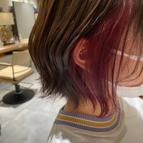 全頭だと勇気が出ないという方にもインナーカラーやイヤリングカラーでさりげなく入れてあげることでお顔も血色がよく見えるのでおすすめです⟡.·
